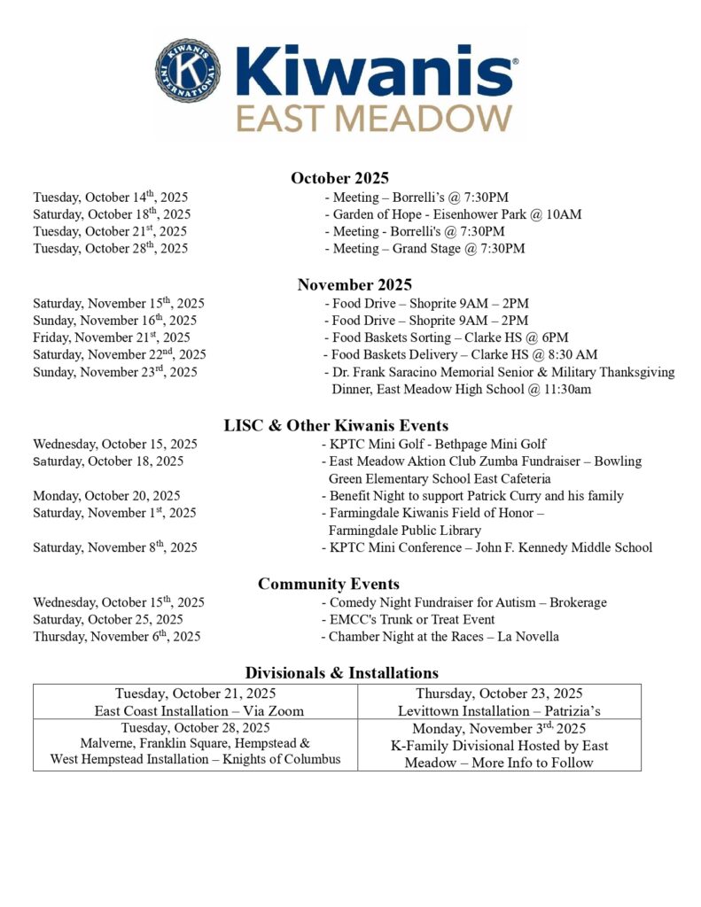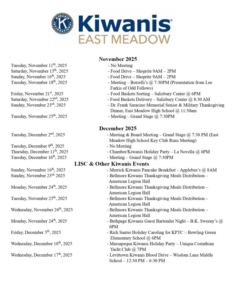 This event would not have been possible without the generosity and enthusiasm of our participants, sponsors, and volunteers. Your continued support enables the East Meadow Kiwanis Club to carry out initiatives that make a lasting impact on our community.
