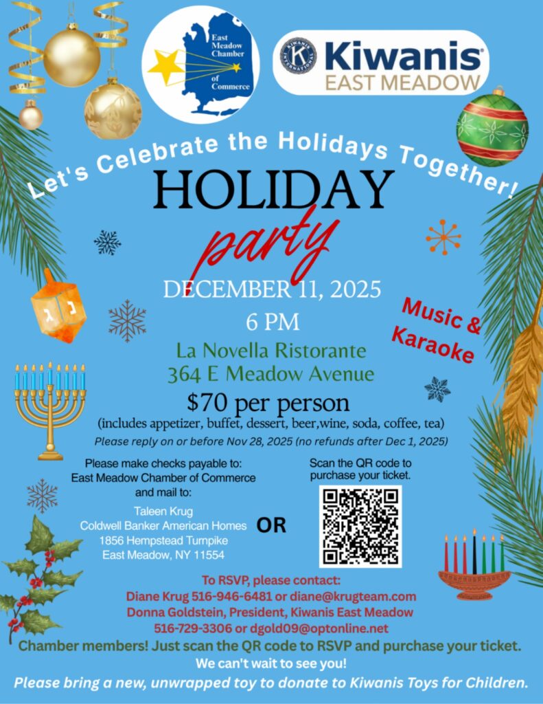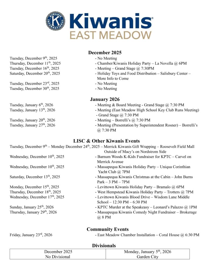 The Kiwanis Club of East Meadow is on track to complete 2025 with a successful season of holiday-themed events, continuing classic traditions and making changes that reflect the needs of friends and �...2 CommentsComment on Facebook